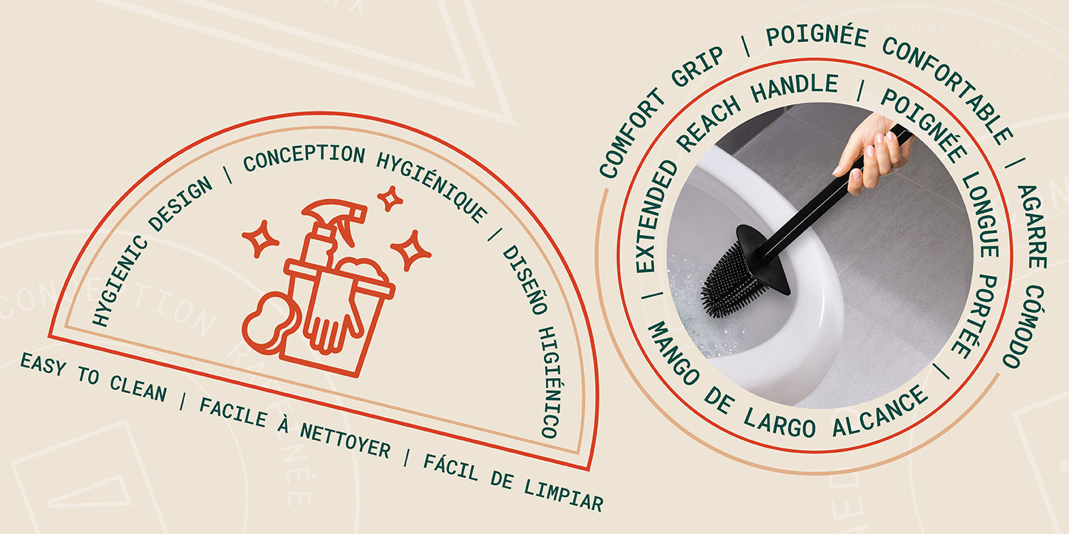 Mango ergonómico en forma de D y base estriada: cuenta con un elegante mango arqueado para mayor comodidad y una base estriada texturizada para brindar estilo y estabilidad.