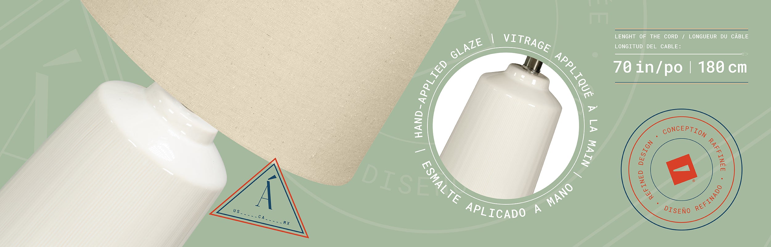 Pantalla Premium: La pantalla de tela de lino color avena proporciona una iluminación cálida y difusa al tiempo que agrega interés textural.