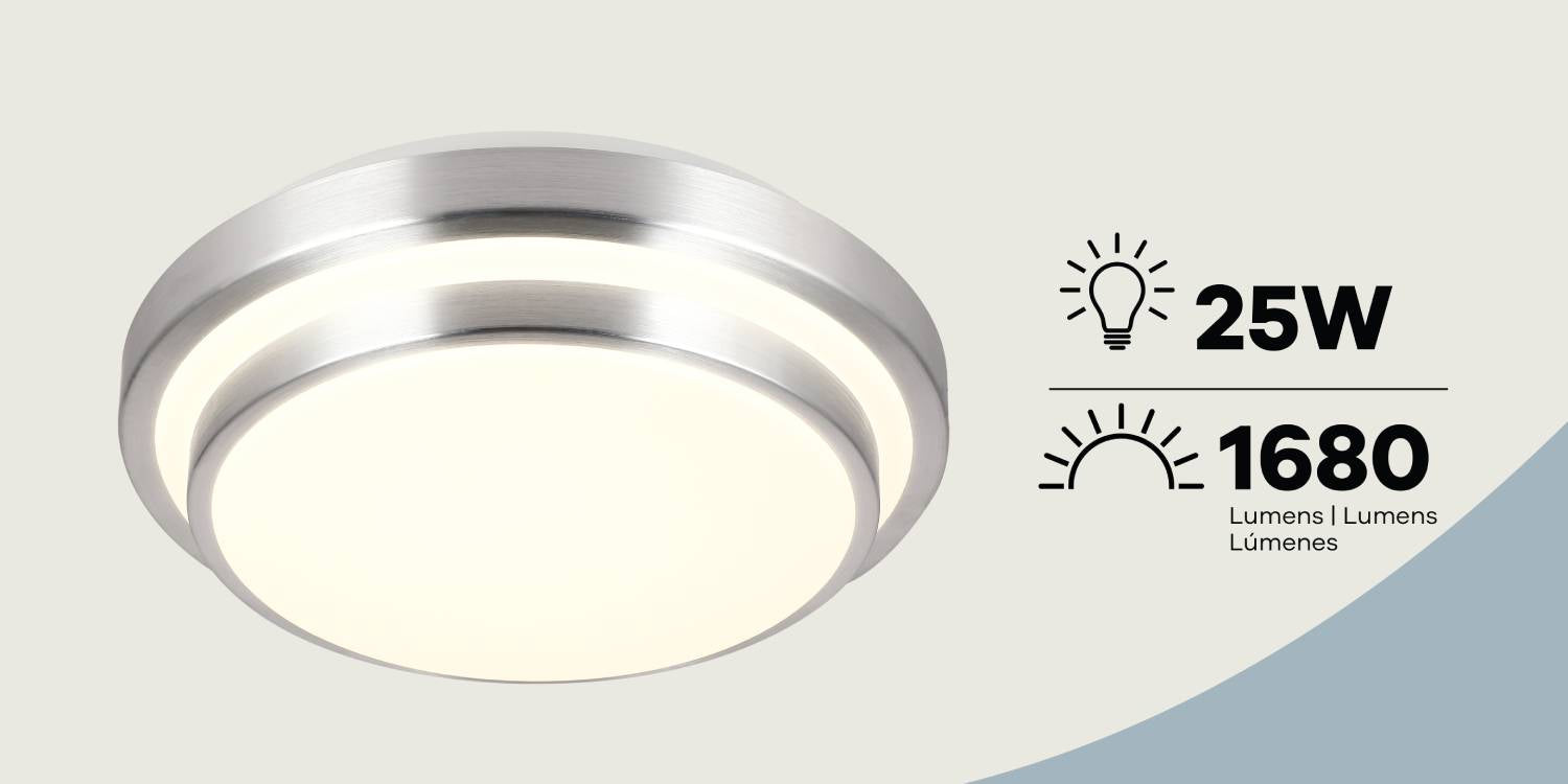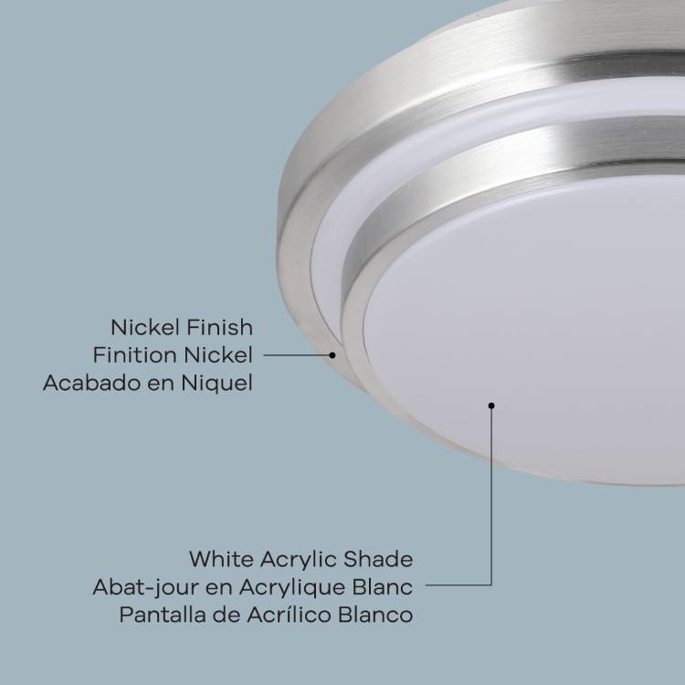 - Modern Flush Mount: Round design with a nickel finish and aluminum accents for a clean, contemporary look.