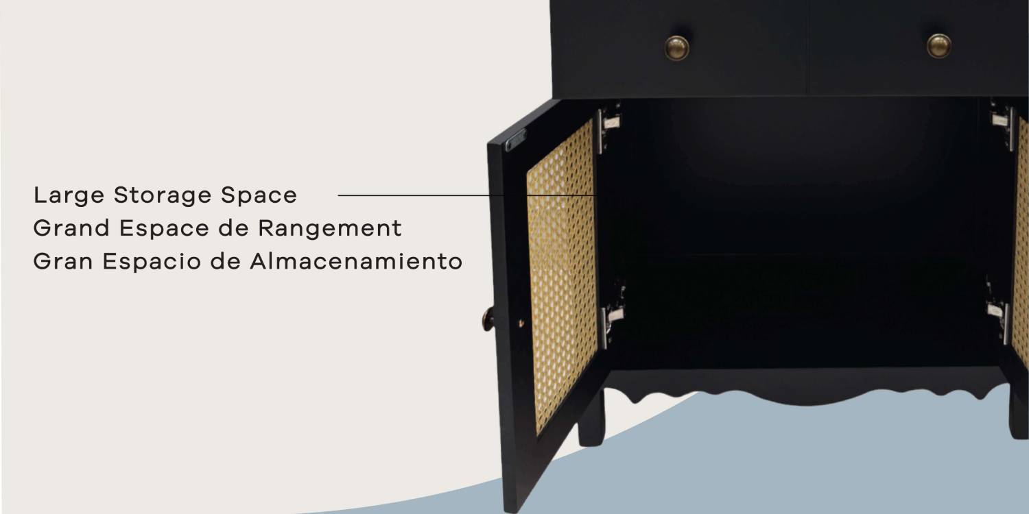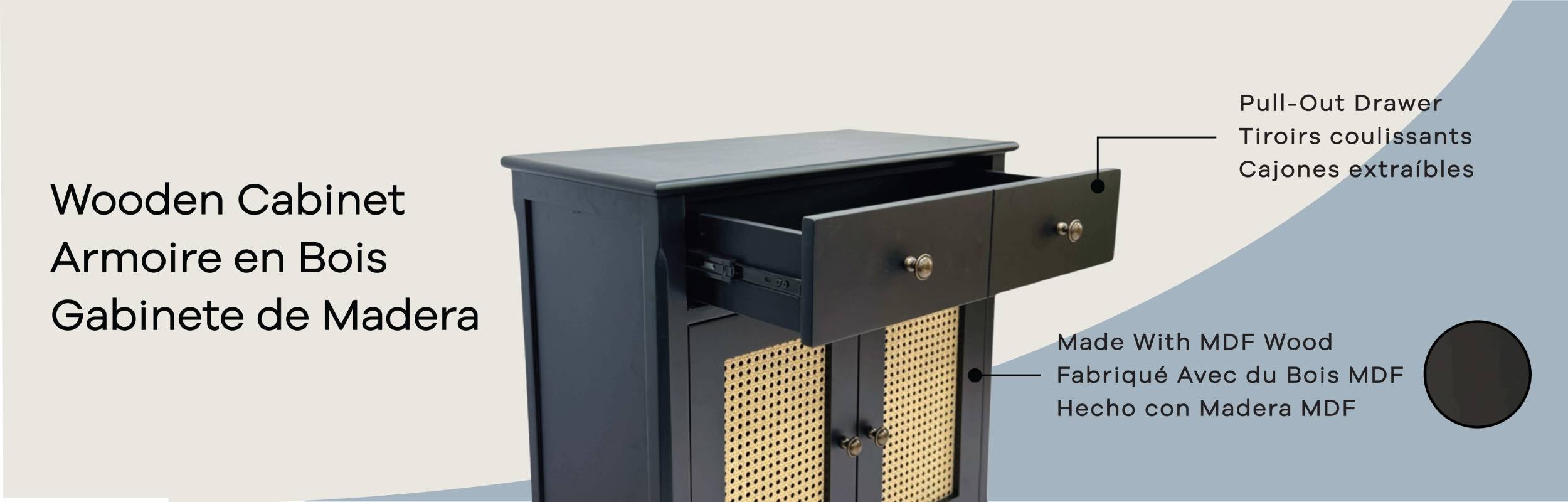 - Modern Design with Wicker Doors: Combines vintage wooden style with natural wicker accents.