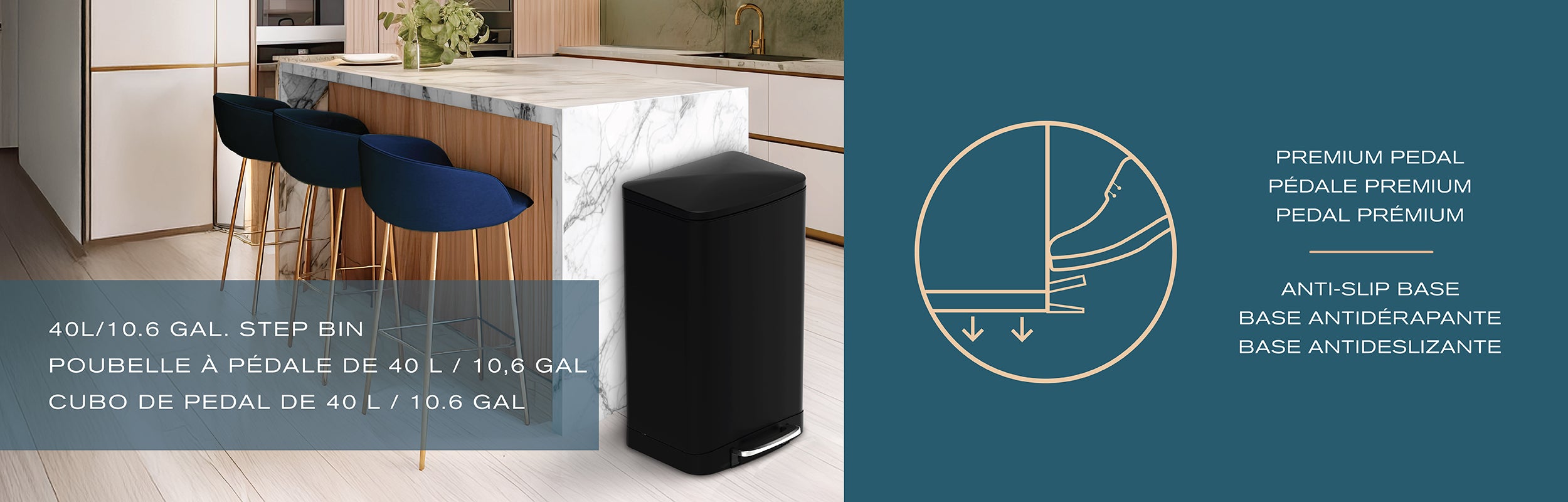 Tapa de cierre suave y apertura amplia: cierre de tapa silencioso con una abertura de tamaño generoso para desechar fácilmente artículos más grandes.