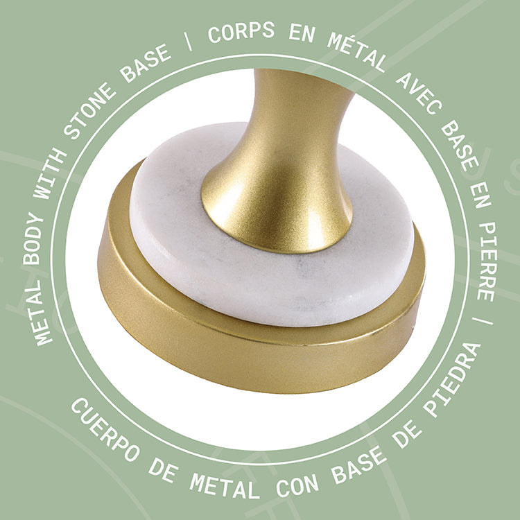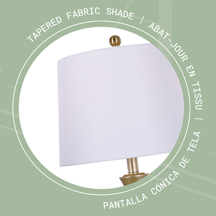 Construcción de primera calidad: fabricada con un cuerpo de metal duradero, una base de piedra resistente y una pantalla de tela cónica suave.