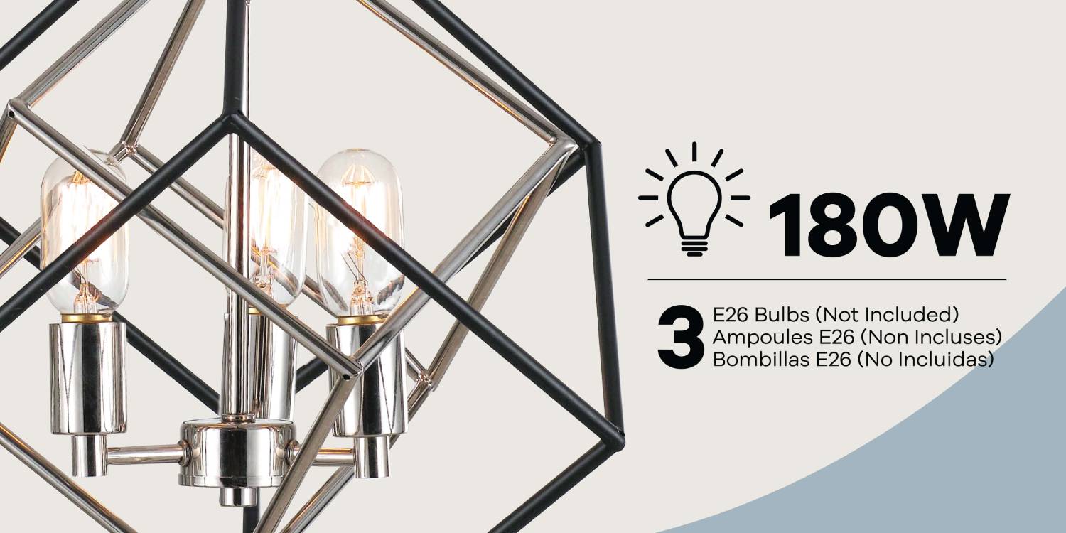 Supports E26 Bulbs: Compatible with up to 60W incandescent bulbs (not included).