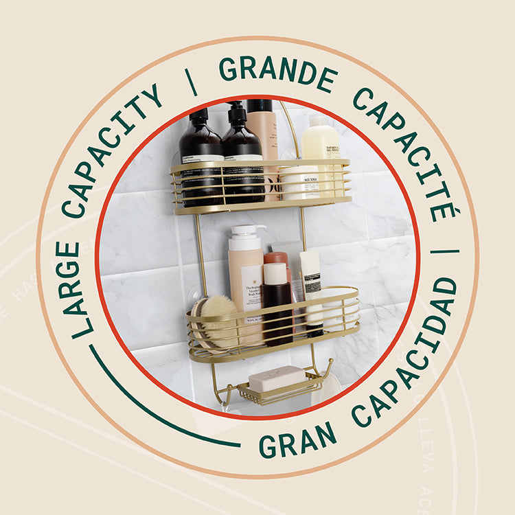 Three-Tier Storage: Spacious shelves hold shampoo, conditioner, and more to keep your shower organized.